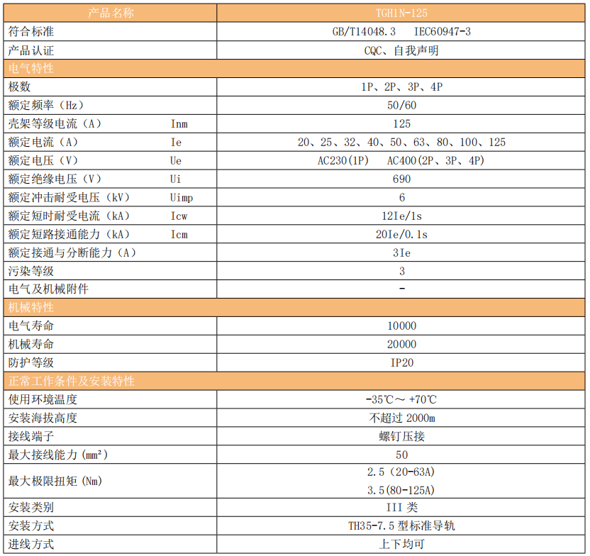 TGH1N-125 隔离开关主要适用于交流 50/60Hz,单极 230V,二、三、四极 400V,额定电流至125A 的控制和配电回路中,主要作为终端组合电器中的总开关,也可用于不频繁控制各类小功率电器和照明,广泛应用于工矿企业、高层建筑、商业及家庭等场所。